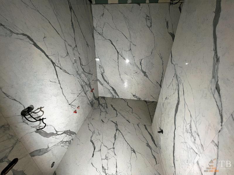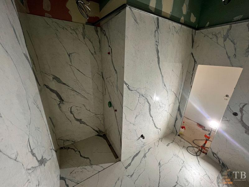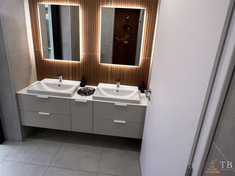 Kompletné realizácie kúpeľní, presné napojenia detailov, rovné línie škár a čisté dokončenie.